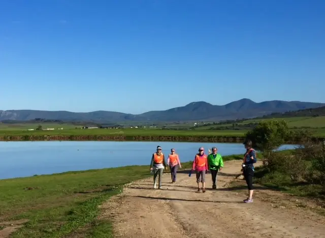 Walk from Farm House, along a jeep track and gravel roads passing Goedvertrou and and Nooiensdraai. Along backroads passing Lomond winery for an optional wine tasting.